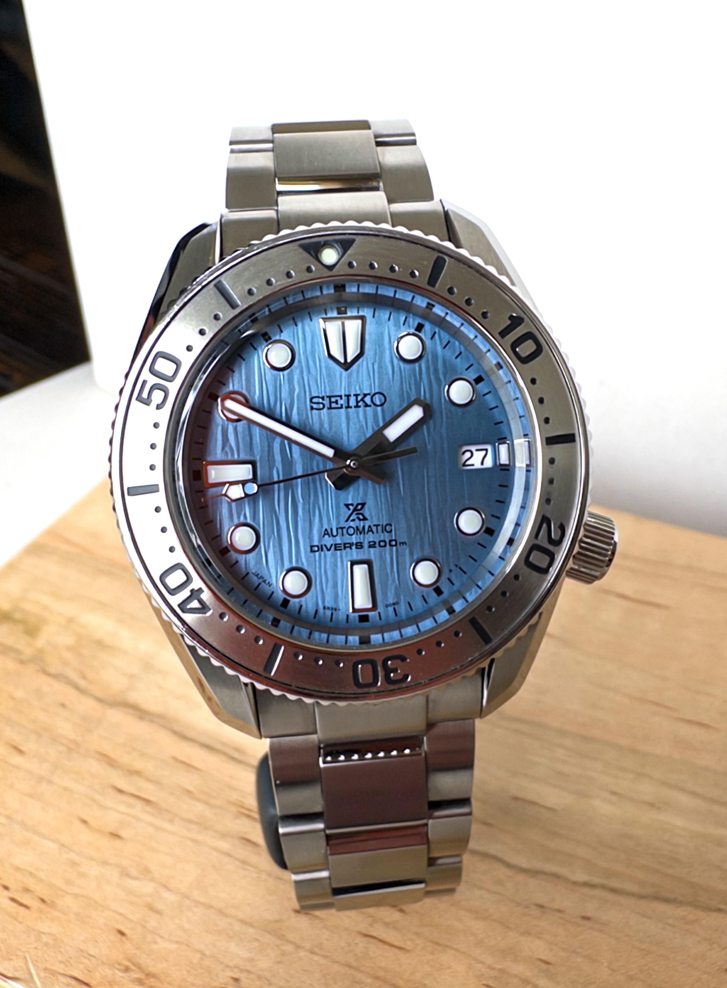 Hi everyone – Doing some collection Spring Cleaning and offering this Seiko SBDC167 Save the Ocean special edition up for sale. Outside Japan this is known as the SPB299. I picked it up at the Seiko Dream House store in Tokyo. This one is unique as I swapped out the original shiny dark teal bezel insert for the brushed steel insert from the SPB185 (using the $200 OEM Seiko part). The original bezel will come with the watch in case you ever want to switch back. Watch runs well, keeps good time,...