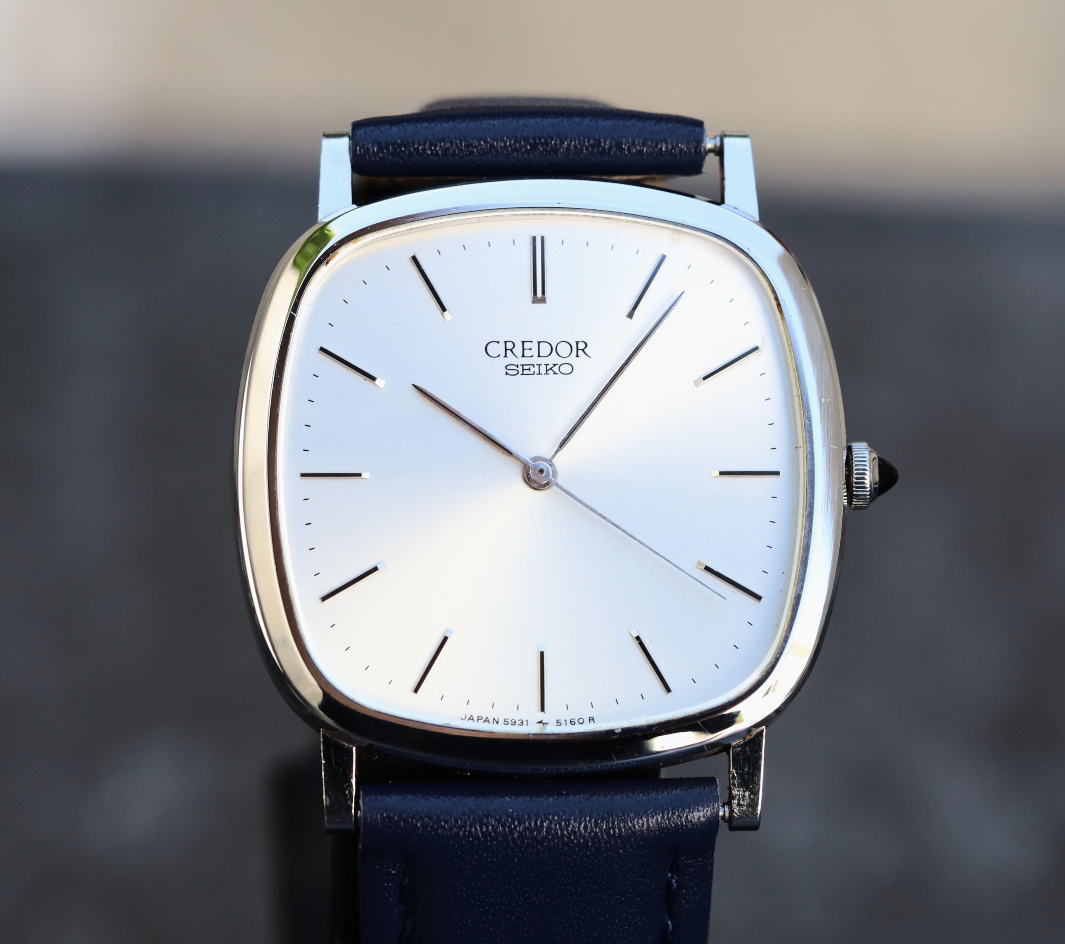 **Greetings watch-people!** **My name is Carlos** and today I am offering a Credor 5931. This iconic Squared-styled watch is in very good condition. The gray dial has hints of white and silver. This watch gives Pateks and Audemars Piguet of the 70’s. **Features** 5931 movement. This is a 6-Jewels high-end movement manufactured by Seiko back in the 80’s Sapphire crystal Onyx Crown Beautiful dial. Super thin watch. Only \~5mm tall Rare double print - Credor and Seiko in the same dial M...