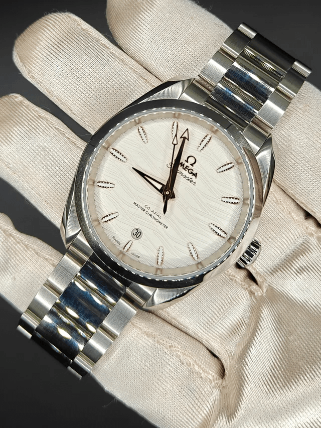 Omega. Aquaterra. 18k Gold Sedna Mint. Complete. 220.10.38.20.02.002 38mm Amazing gold waves beachy waves on this dial! Album (with Video) and Timestamp: [https://imgur.com/a/Ga2pSXv](https://imgur.com/a/Ga2pSXv) 38 mm, steel on steel Active Warranty from Late 2024 - 2029 9.25/10 Condition Asking $4099 plus shipping plus shipping insured (+$30 for ground /+$45 for 2 day / +$80 for overnight) CONUS Follow my Instagram: [https://www.instagram.com/thelastsecondbyom](https://www.instagram.com...