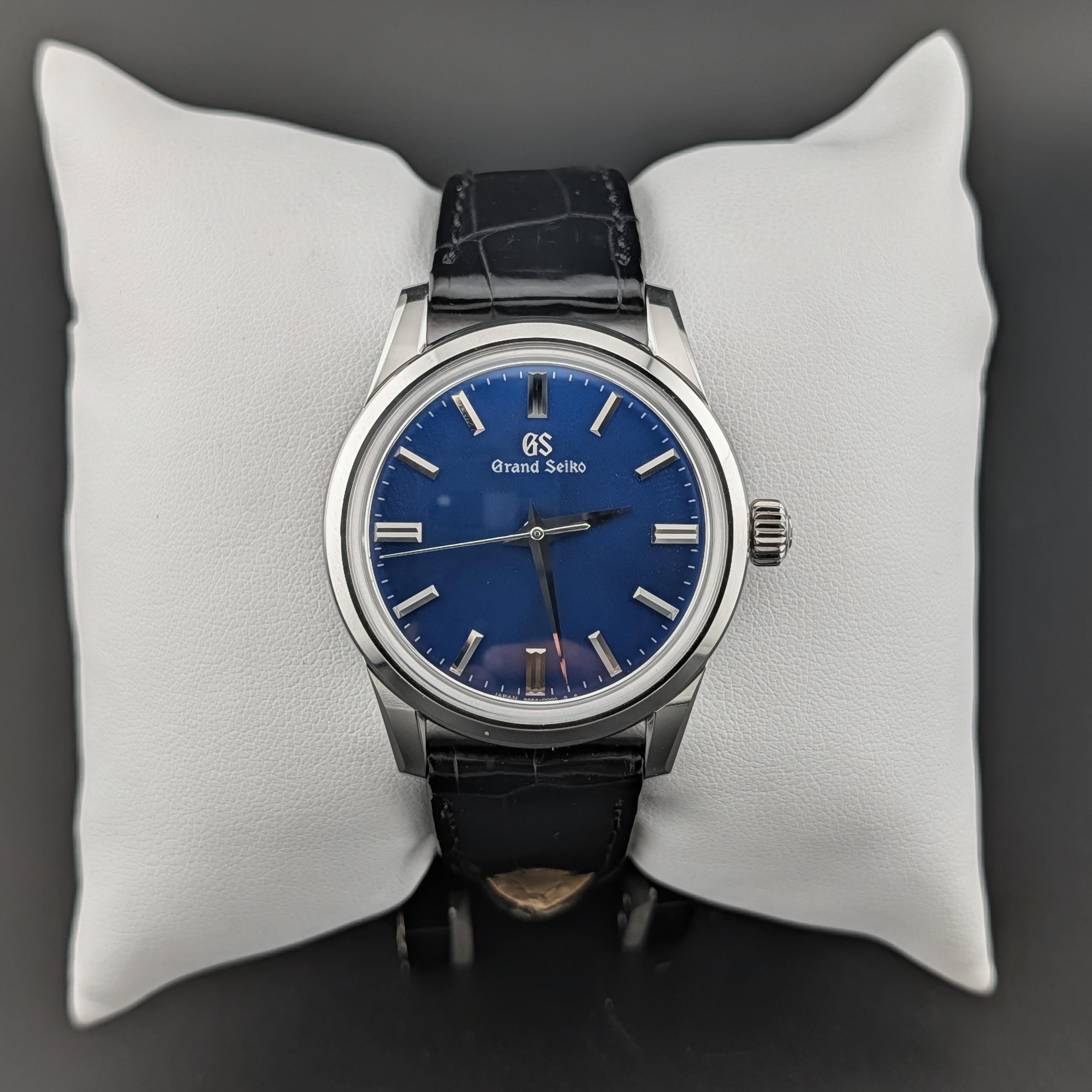 Up for sale is the beautiful Grand Seiko SBGW279, nicknamed the "Oruri" after the blue-and-white flycatcher songbird that migrates to Japan in the summer. This U.S.-only special edition features a captivating sunburst blue dial that shifts beautifully in different lighting. Condition: Great / Near Mint. The Zaratsu-polished case shows minimal signs of wear with only very faint hairline scratches. The box-shaped sapphire crystal is flawless. Specifications:Case: 37.3mm x 11.6mm stainless steel...