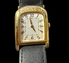Coach W001 Women's Gold Tone Rectangular Watch Black Leather Strap Swiss Movt