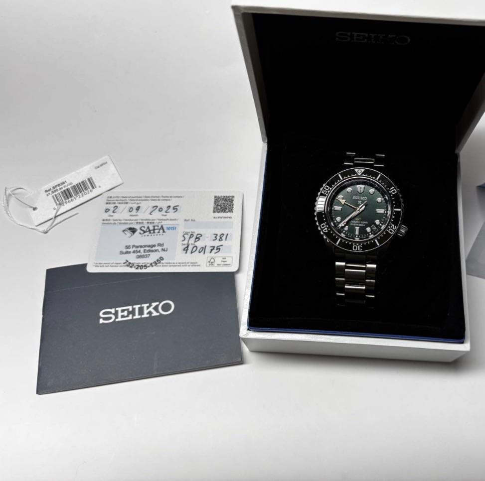 Asking 1100$ usd shipped. Watch in great condition. Comes with additional bracelets (300+ worth of straps) Pre-Owned SPB381/SBEJ009 ‘1968 Heritage Drivers’ With Green Dial & Ceramic Bezel * Original watch and band/clasp in USED / VERY GOOD CONDITION * Original Box and Papers, including TAGS * Spare links & pins for the below bracelets. * StrapXPro black with Uncle Seiko divers clasp cut for 7.5”ish wrist Original Authentic Seiko Deployant Clasp with old school Brown leather R...