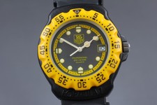 *Near MINT* Vintage TAG Heuer 380.513/1 Black & Yellow Date Men's Quartz Watch