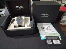 GEVRIL MEN'S WATCH WALL STREET AUTOMATIC BLUE FACE AND CERAMIC BEZEL 4853B