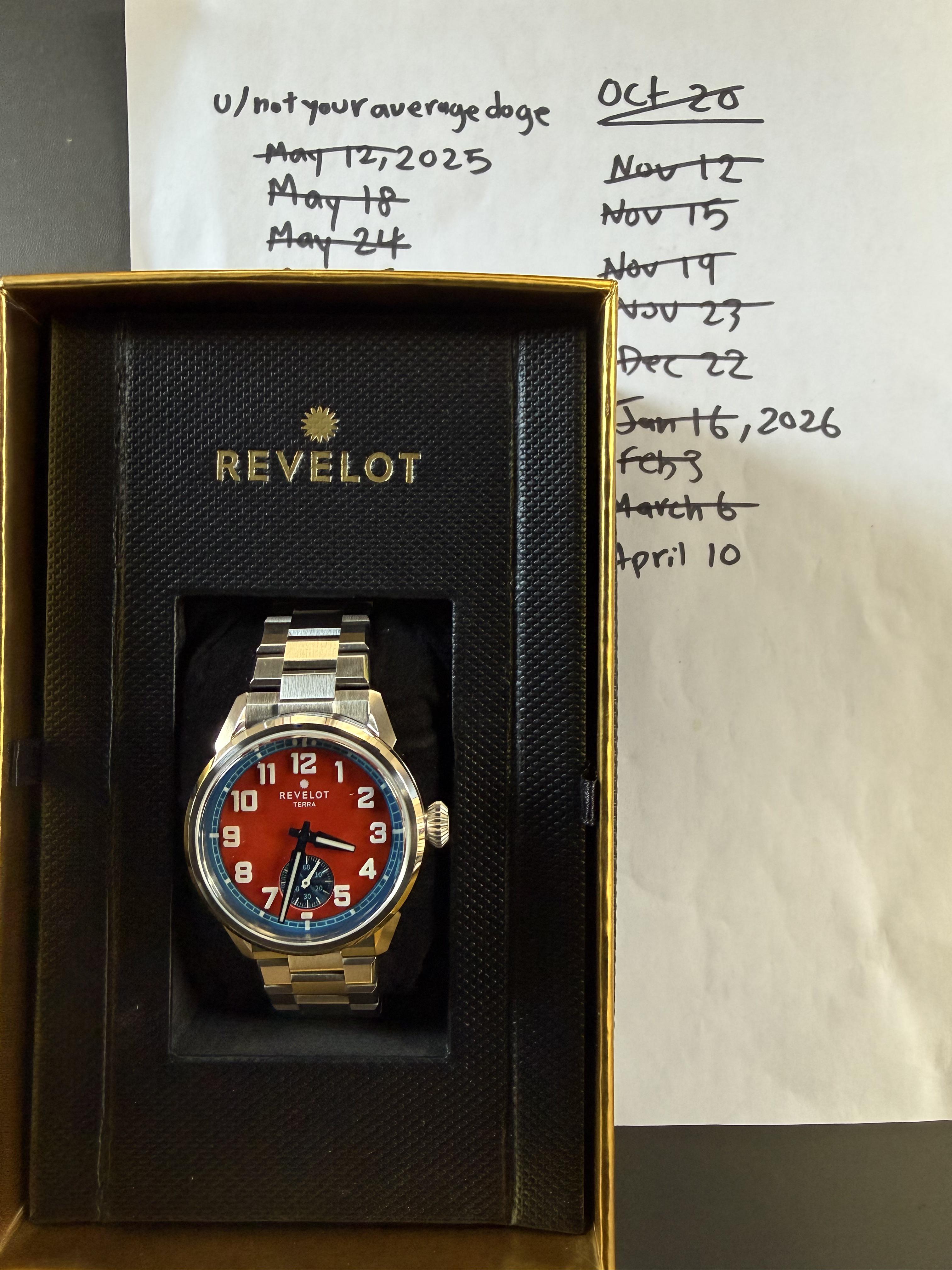 Brand new Revelot Terra v2 with Red Agate stone dial. **$350 shipped** (firm) to anywhere in the US. No trades at this time. Prefer payment via Paypal F&F (+3% G&S for established Reddit accounts), Zelle, or Venmo. Please let me know if you have any questions!