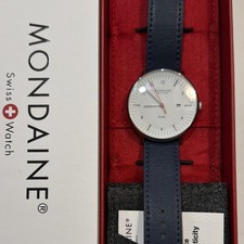 Mondaine Solar Powered Swiss Made Wristwatch Blue Leather Strap Steel Case