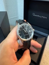 Hamilton Jazzmaster Gent Quartz Watch Stainless Steel Black Dial Leather