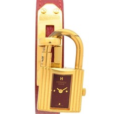 HERMES Kelly Watch Wristwatch GP (Gold Plated) Leather Strap Bordeaux Ladies Bor