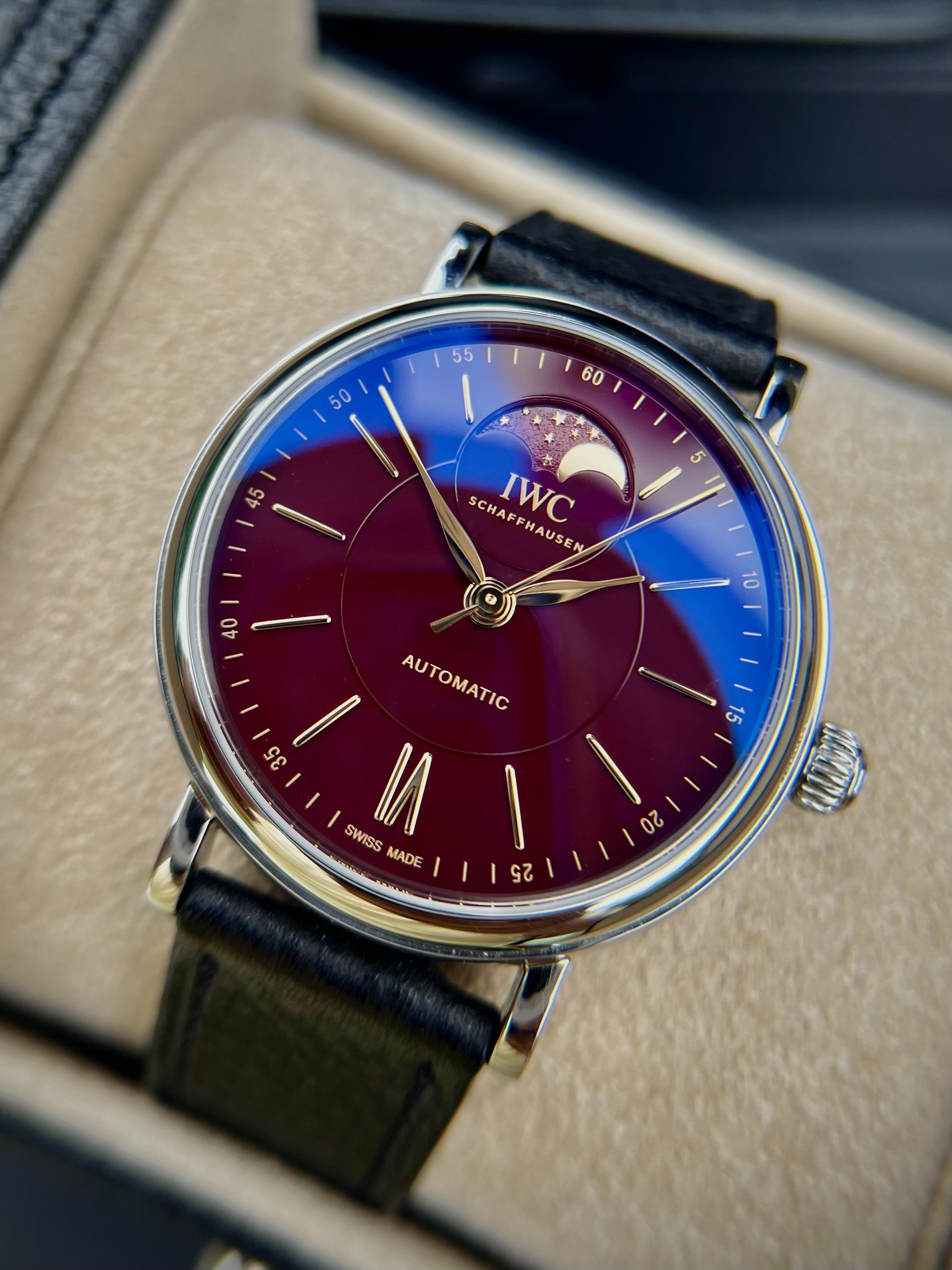 Hello, up for sale is my IWC Portofino Automatic Moon Phase Year of the Snake Ref. IW459604, a truly striking and elegant limited‑edition piece that effortlessly blends classic dress watch refinement with artistic flair. The 37mm polished stainless steel case paired with the rich burgundy/red dial gives this watch an eye catching yet tasteful presence on the wrist, while the beautifully executed moon phase display at 12 o’clock adds a sophisticated and poetic touch. What sets this edition apa...