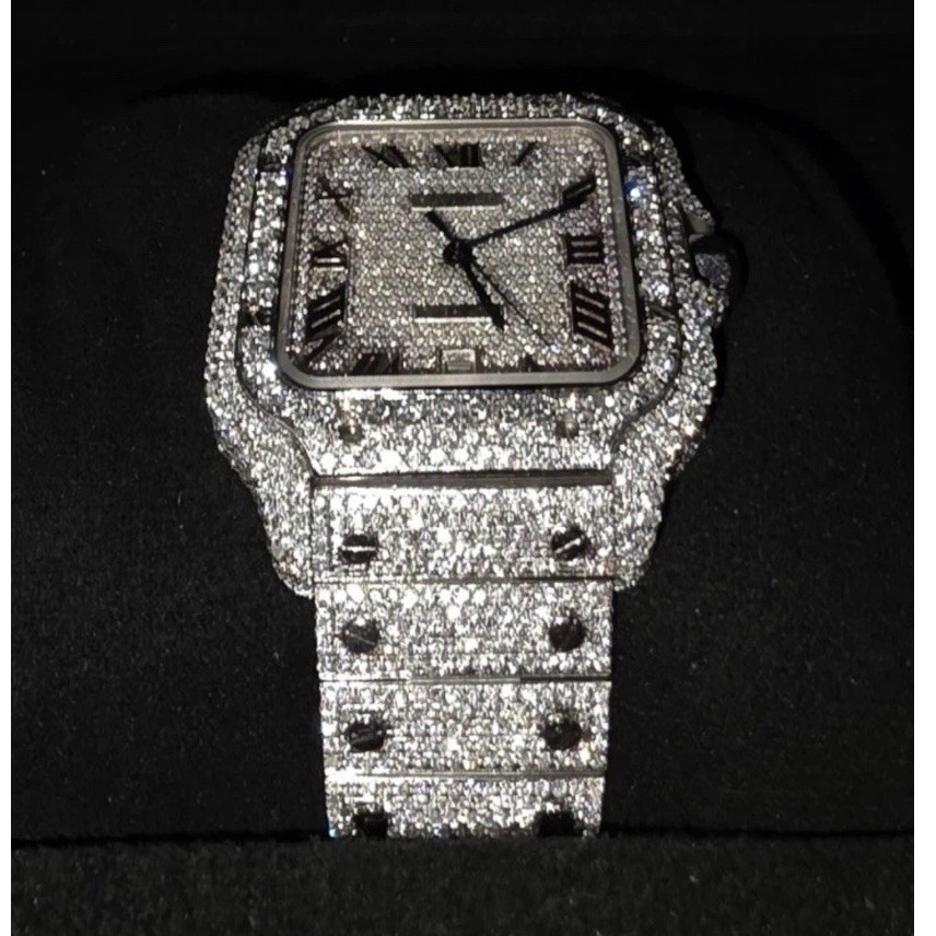 Cartier Santos Diamond Accent Luxury Men's Silver Analog Wristwatch without Box