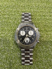 1990's Hamilton 40mm Stainless Steel Swiss Chronograph Black 8802A Watch Vintage