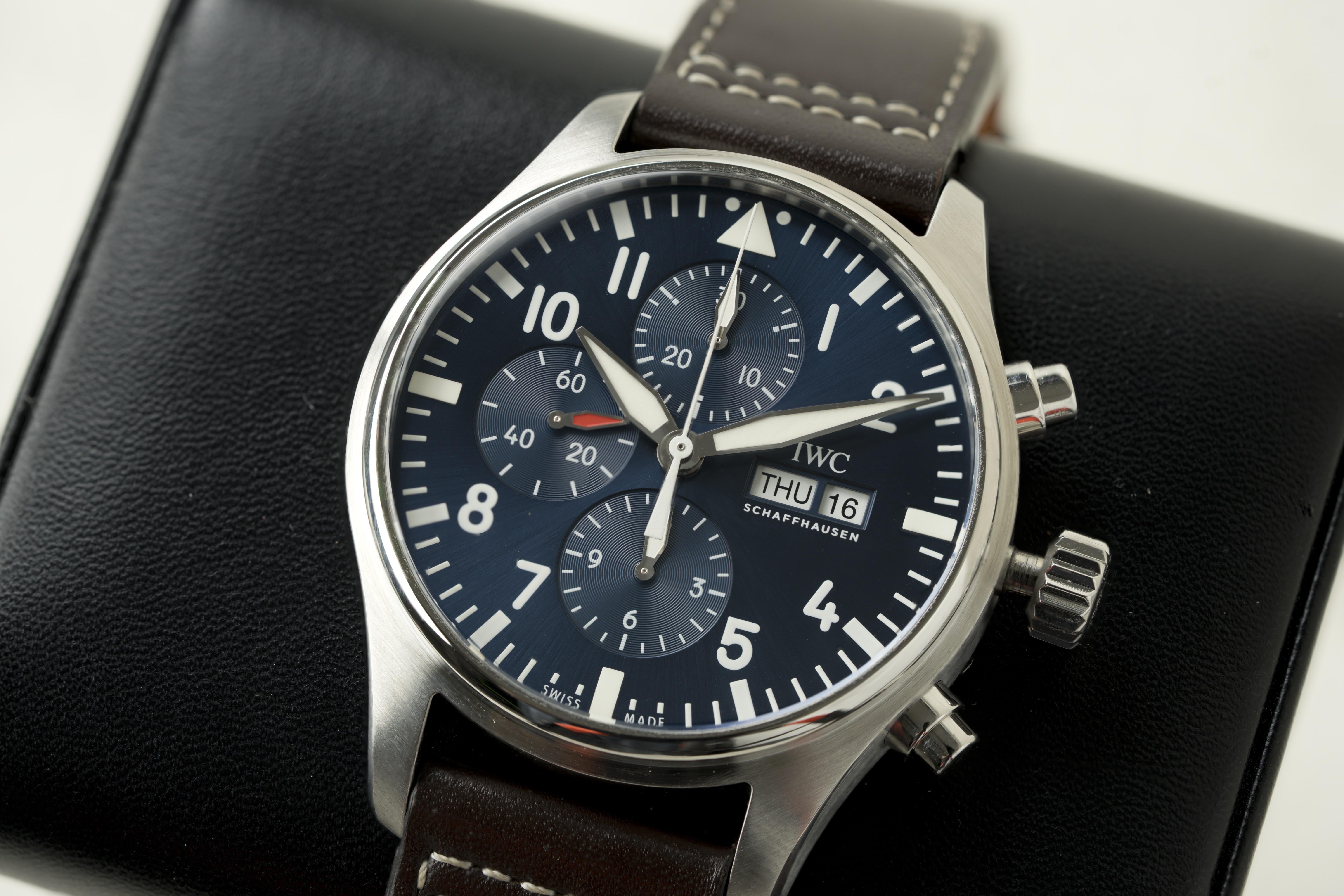 [WTS] IWC Pilot Chronograph 43mm IW377714 | 2021 Box and Papers 🔍 Condition: Excellent Pre-Owned *Extended Warranty until 2029* 📦 Contents: 2021 Warranty Card | Box | OEM Leather Strap ⚙️ Service: Service History Unknown; 3 s/d 265 AMP 💰 Price: $3,950 Shipped Overnight! 💳 Payment: Wire | Zelle | Venmo | Crypt0 + 1.5% 📍 Location: Phoenix, AZ 🔄 Trades: Trades accepted for most major brands Feel free to message me if you have any other questions or would like to see more pictures, I ...