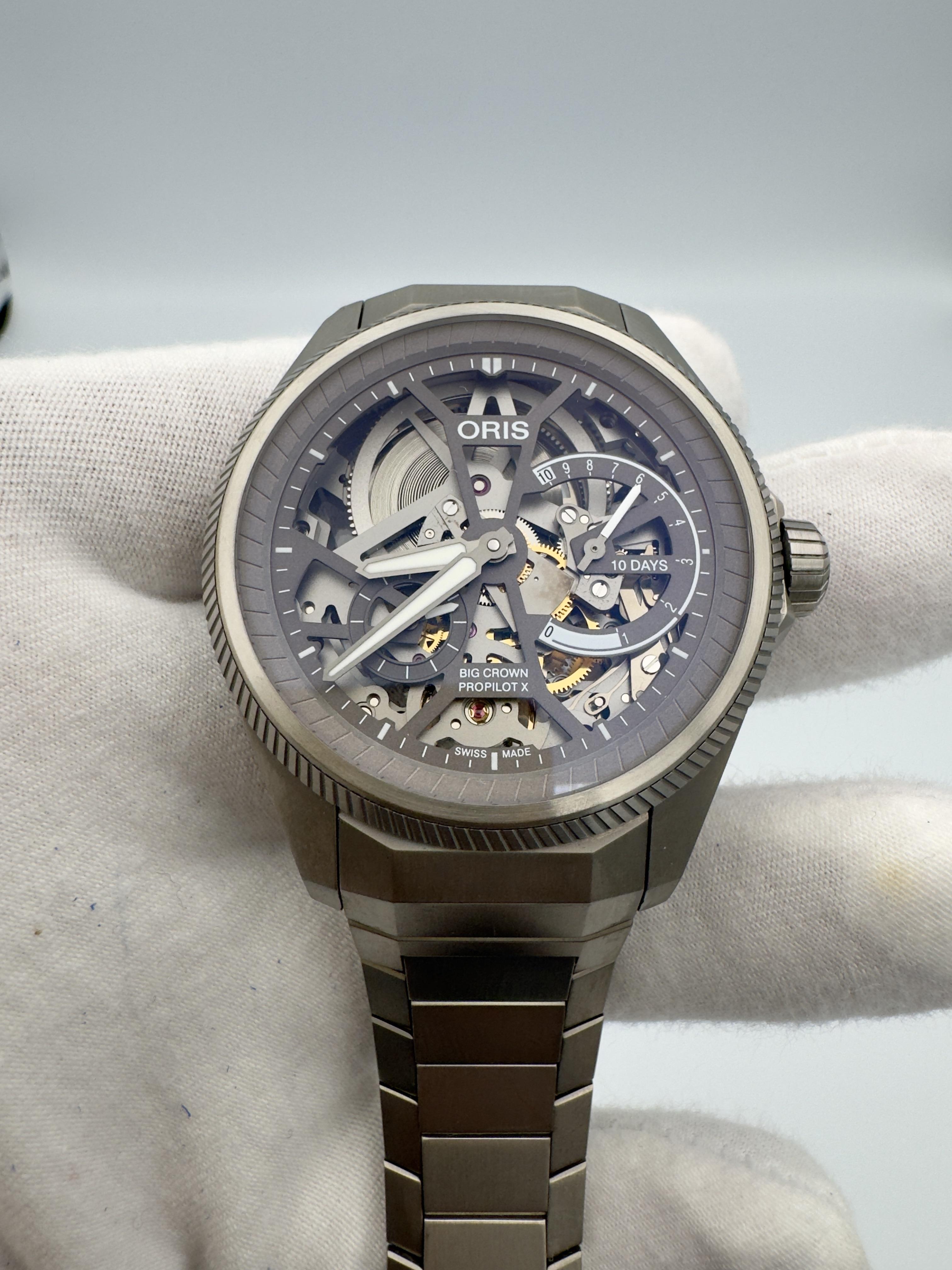 Oris Propilot X Calibre 115 Titanium Skeleton Dial 10 Days 01 115 7759 7153 Full kit. Great condition; minor hairlines from regular use maybe visible. Check pictures. Priced at $4999 + label. Firm.