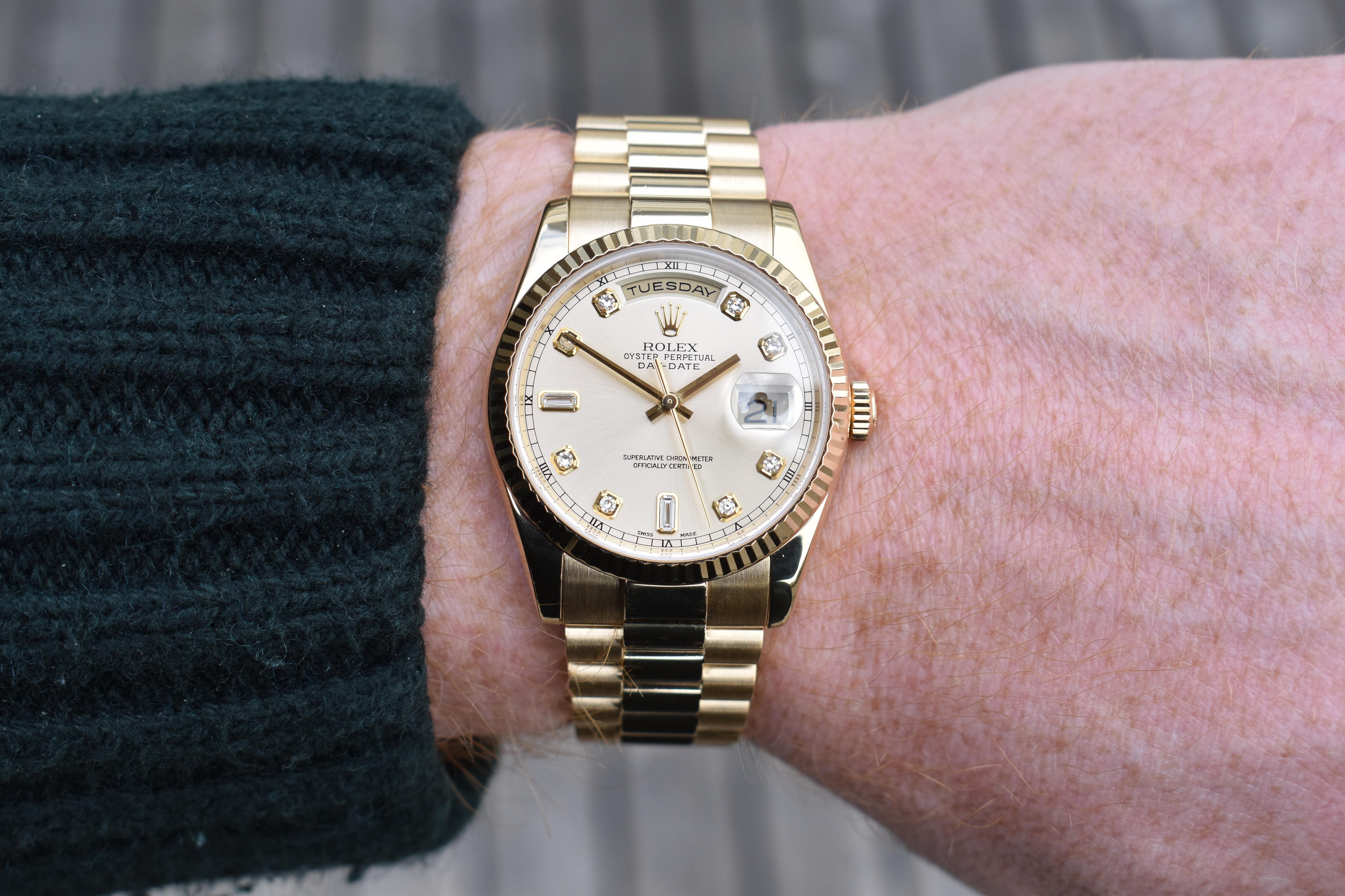 View more about Rolex Day-Date 36 Yellow Gold Fluted / President / Green and similar referencesWristViewSee this watch model on your wrist