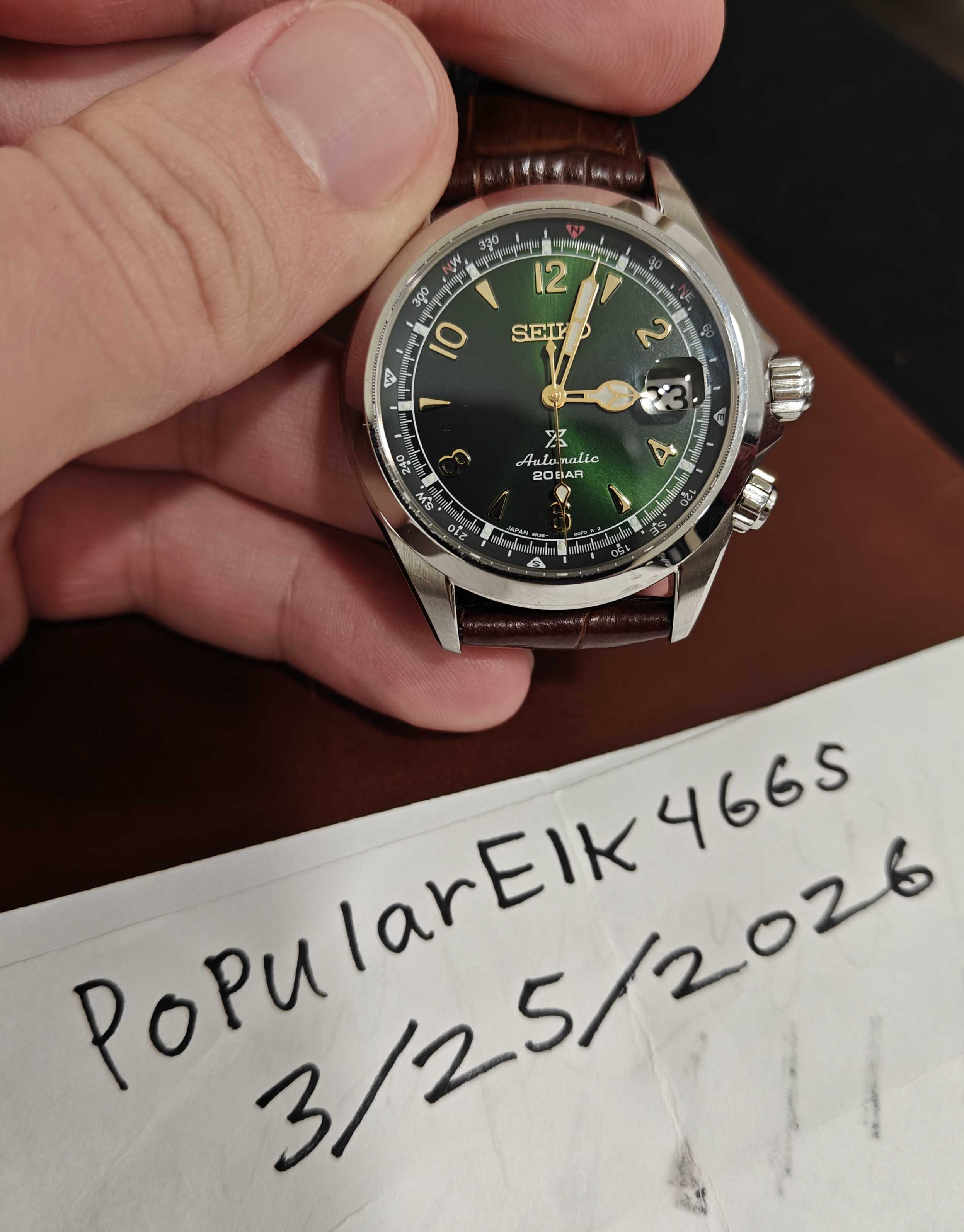 ![[WTS] Seiko Alpinist SPB121- $410 shipped!](/_next/image?url=https%3A%2F%2Fsxdtrcenjzhqcznhokgy.supabase.co%2Fstorage%2Fv1%2Fobject%2Fpublic%2Freference-images%2Freddit%2F1scqy5m.jpg&w=1200&q=75)