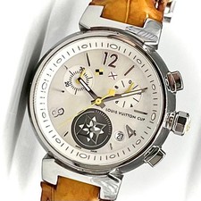 LOUIS VUITTON Tambour Chronograph Quartz Watch Q132C Croco Silver Dial
