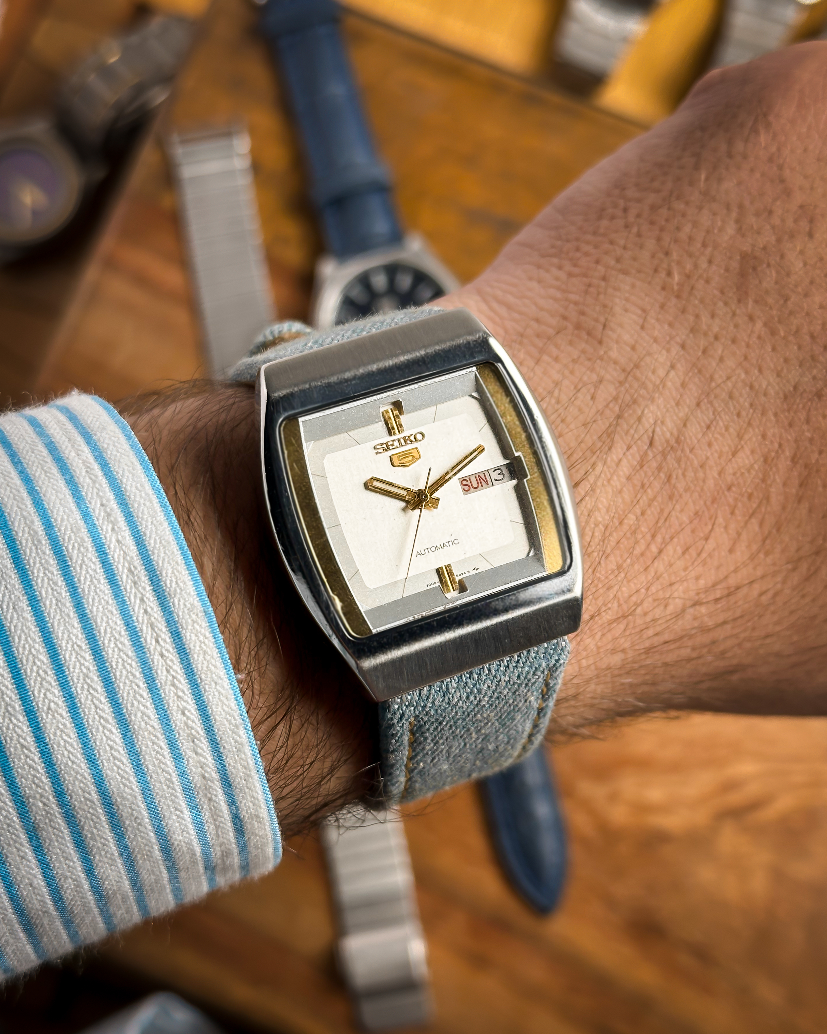 [Timestamp](https://drive.google.com/file/d/165mdxf2kGT_Z6WVyLj38MjuhLXh9bMNu/view?usp=sharing) Hey Watchexchange! For sale is a truly unique "character" piece fromย **July 1985**. This Seiko 5 Ref. 7009-5770 is a masterclass in 80s geometry, offering a rugged yet refined "denim and gold" aesthetic. The star of the show is theย **White Linen Texture dial**. It features a unique "depth effect" created by a boundary of slim, printed stick indices that lead your eye toward the center. Flanking the...