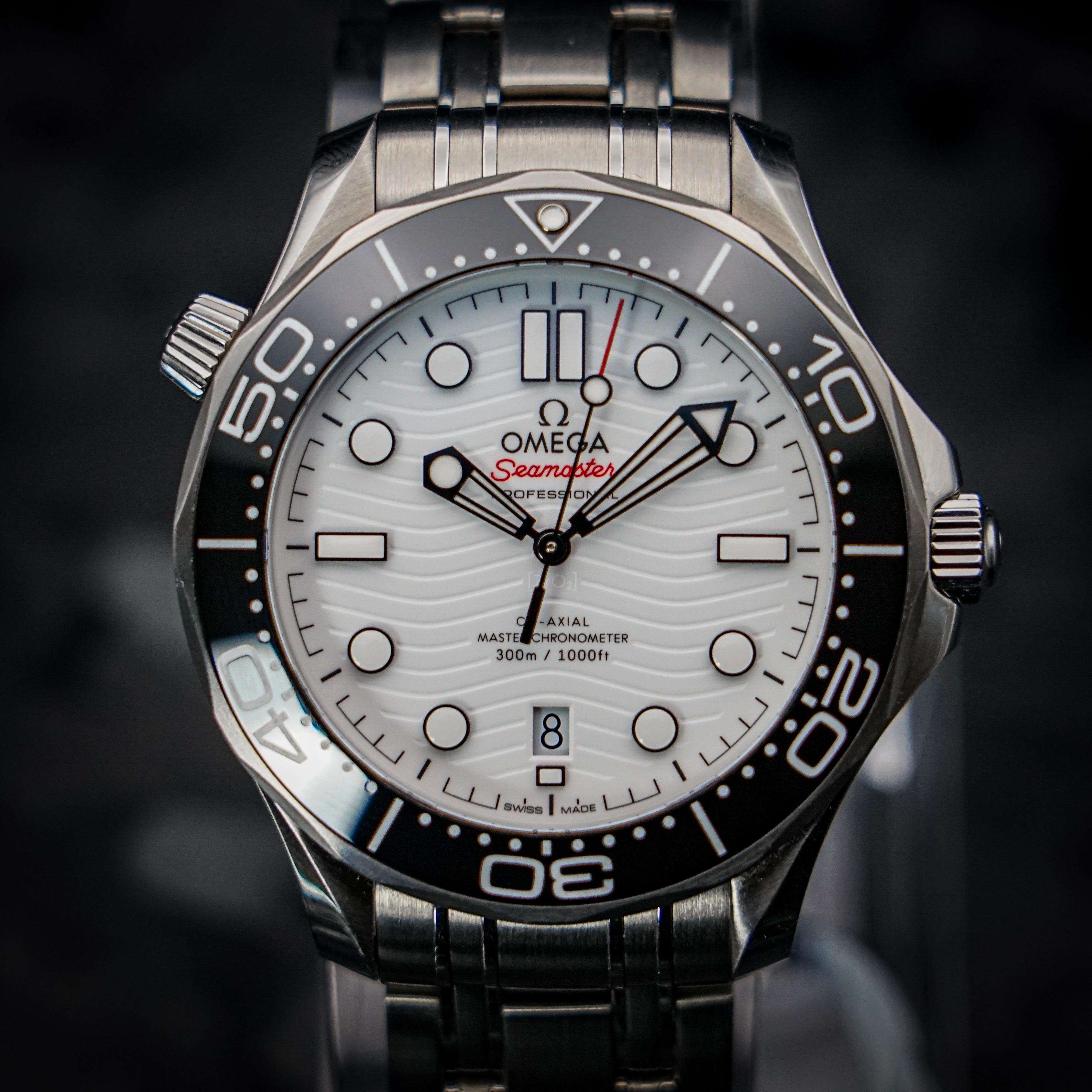 Omega Seamaster Diver 300m White Dial Black Bezel Why settle for an ordinary dive watch when you can wear one of the most iconic modern designs ever created by Omega? This stunning Omega Seamaster Diver 300M 210.32.42.20.04.001 delivers the perfect balance of sport and luxury. The crisp white wave dial gives it a clean, eye-catching look that stands out from the typical dark-dial divers, while the stainless steel bracelet adds that unmistakable luxury feel and wrist presence that collectors lo...