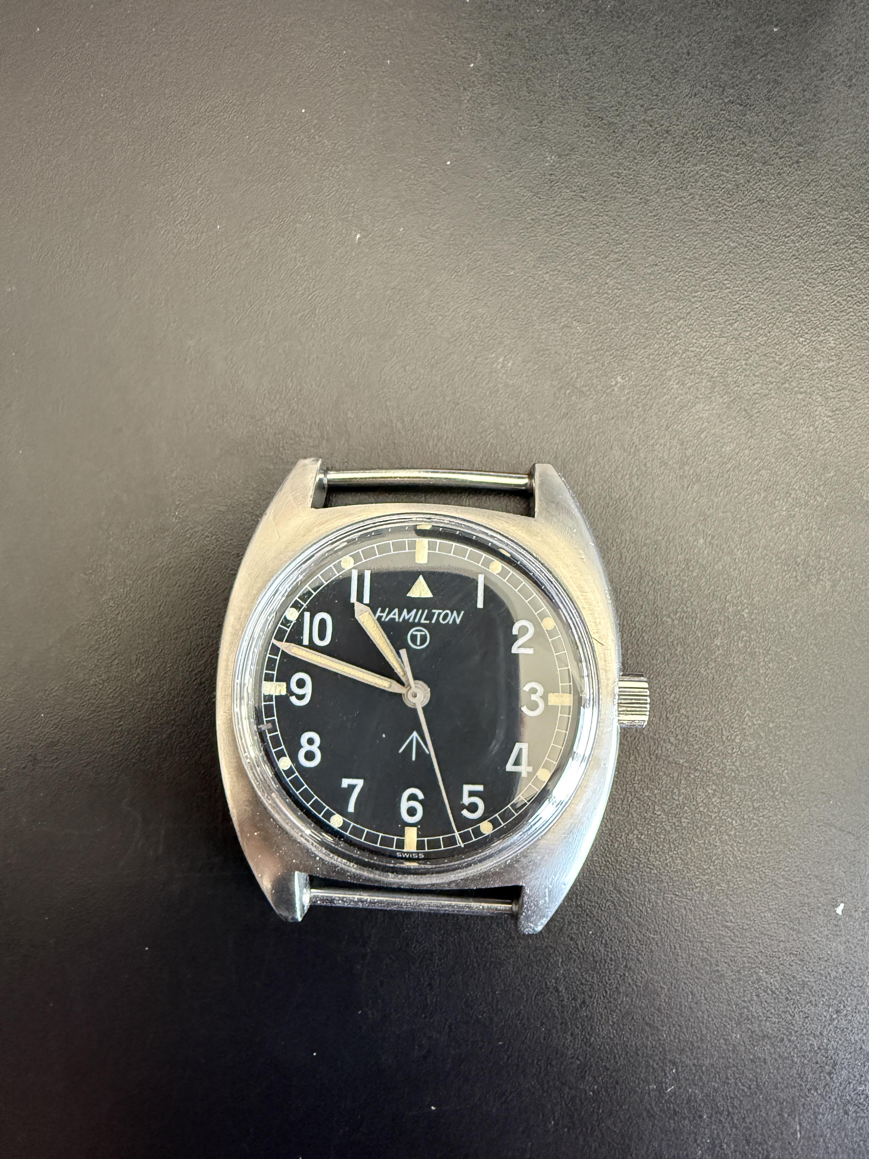 FOR SALE: Issued 1973 Vintage Hamilton W10 This one is in solid shape. Based on the timegrapher (see video) it was serviced at some point but the actual service history is unknown. Also I have no idea about water resistance. Comes with a grey nato that was cut to single pass. Please let me know if you have any questions. Timestamp: [https://www.dropbox.com/scl/fi/16z4guauuy87o8dh4vte8/IMG\_5852.JPG?rlkey=s2plvofuijampugpe7798ch4s&dl=0](https://www.dropbox.com/scl/fi/16z4guauuy87o8dh4vte8...