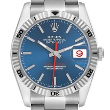 Rolex Datejust Turnograph Steel White Gold Blue Dial Mens Watch 116264 Papers