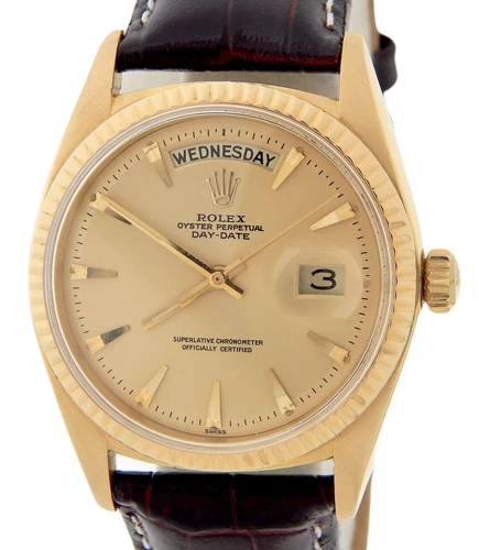 Vintage Mens Rolex Day-Date 1803 Solid 18K Yellow Gold Watch Champagne Dial