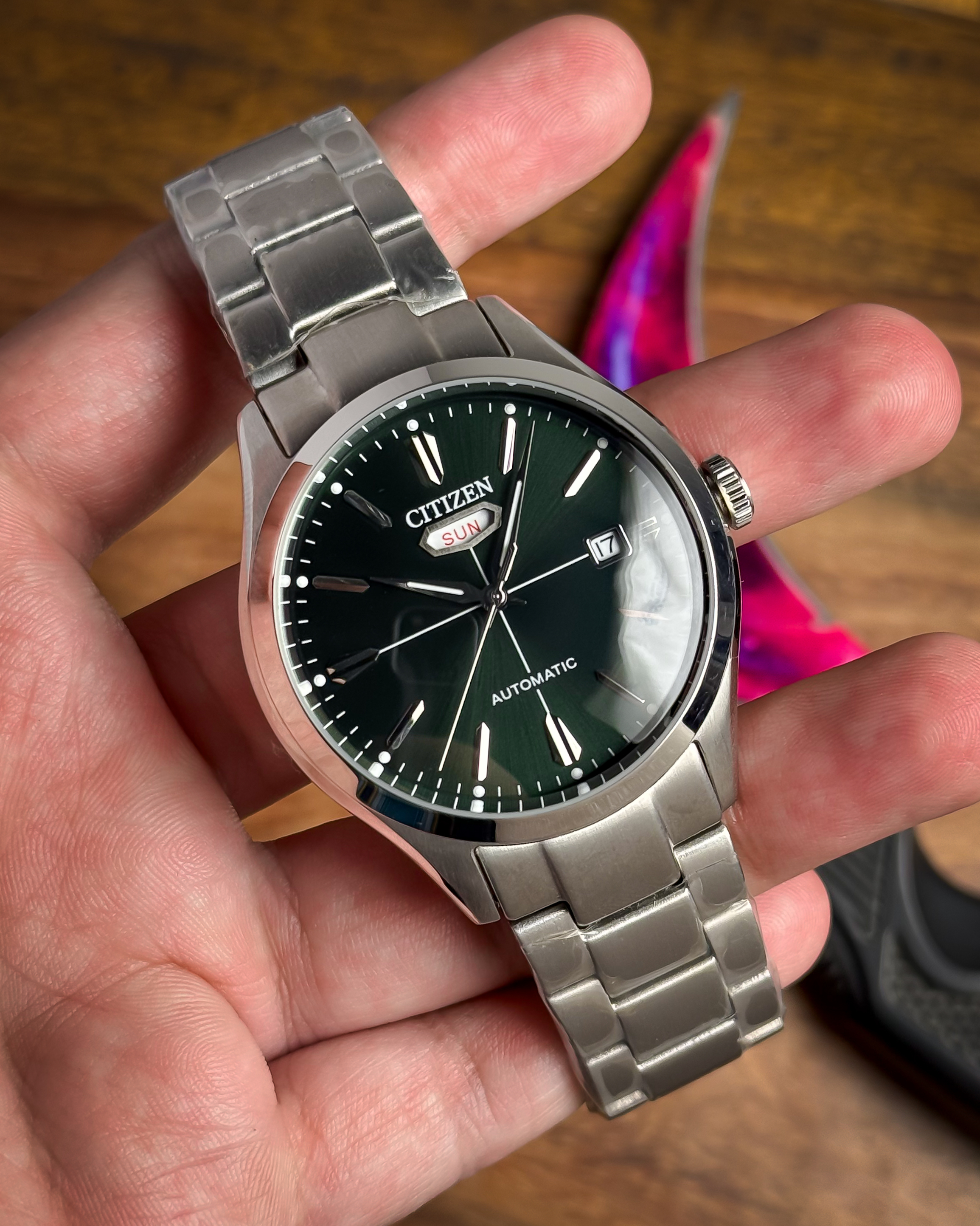 [Timestamp](https://drive.google.com/file/d/1Nf8fvU46gqXtVZ3Mi4LAHl1DRcjYiXTz/view?usp=sharing) Thisย **Citizen C7**ย is a remarkable catch for those who appreciate heritage design with modern reliability. The standout feature is undoubtedly theย **Deep Forest Green Sunburst Dial**, a rich, moody emerald shade that shifts from near-black to vibrant pine as it catches the light. The dial is finished with a classicย **crosshair design**, sharpย **dagger indices**, and elegantย **sword hands**. Tru...