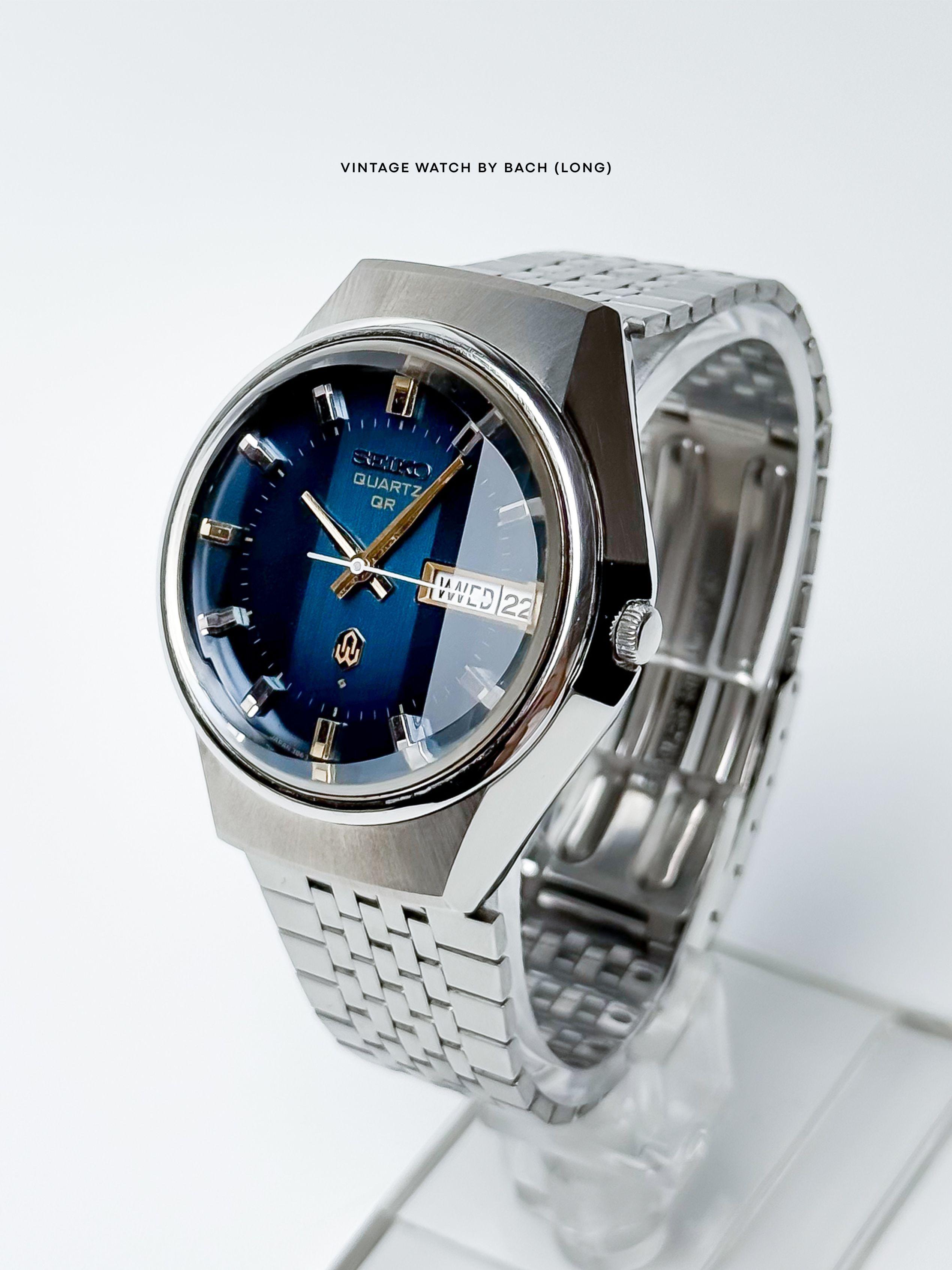 Seiko QR 3863-7020 Gradient Blue Faceted Crystal - Price includes shipping + import duties + taxes (DDP) SPECIFICATIONS: \- Japanese Seiko QR in excellent condition from Oct 1973. Classic and vintage style. QR model is one of the first quartz watch line of Seiko. \- Seiko stainless steel bracelet (other model), fit up to 19cm wrist. \- Stainless steel case size 37mm (without crown), Lug to Lug: 40mm, Lug Width: 18mm, Thickness: 13mm. Suitable with all wrist size. \- Beautiful gradie...