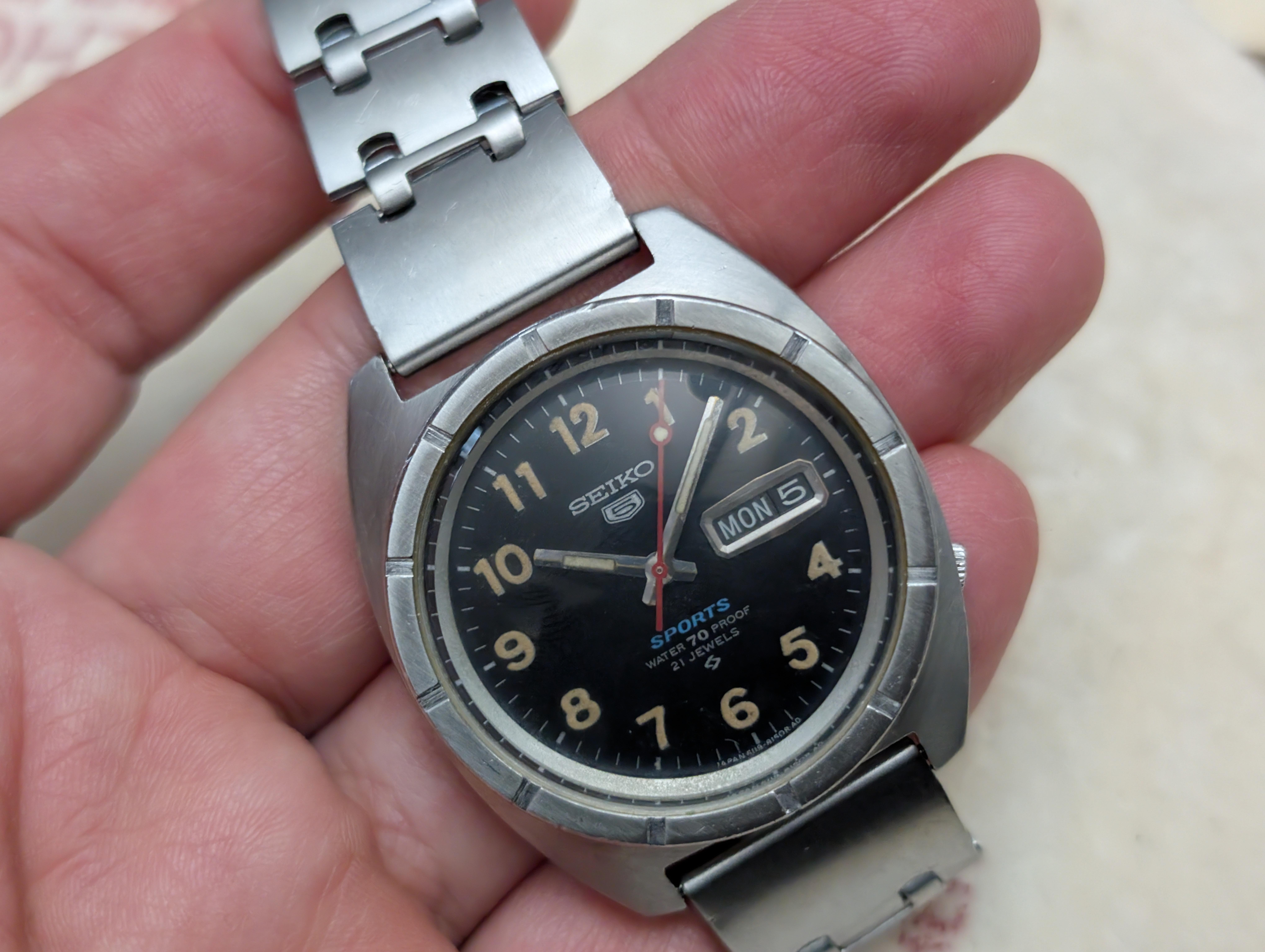 [WTS] Seiko 5 Sports 6119 8140 'Water 70 Proof' on (original?) bracelet XGA 062 with signed clasp, extender, and two spare links - free ship to USA