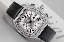 Cartier Roadster Automatic Chronograph Diamond Bezel Black Leather Band