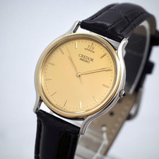 SEIKO CREDOR Vintage Watch 18K Gold Bezel 8J81-6B00 Quartz New Battery 32mm