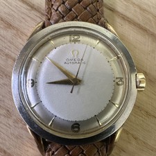 Omega Automatic Men's Wristwatch Silver Dial Brown Leather Strap Stainless Steel