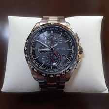 Citizen Attessa Eco Drive Solar Radio Watch Black Bezel Red Accents Used