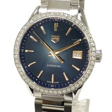 TAG Heuer Carrera Quartz SS Diamond Bezel Navy Dial WBK1317 from JAPAN