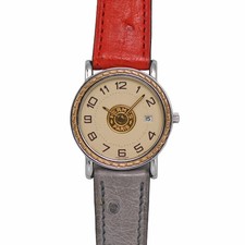 Hermes Serie Date Ladies Quartz SS Ostrich Leather Engraved Watch USED