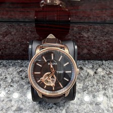 Bulova Men's Gold Skeleton Dial Automatic Metal Bracelet Watch Roman Numerals