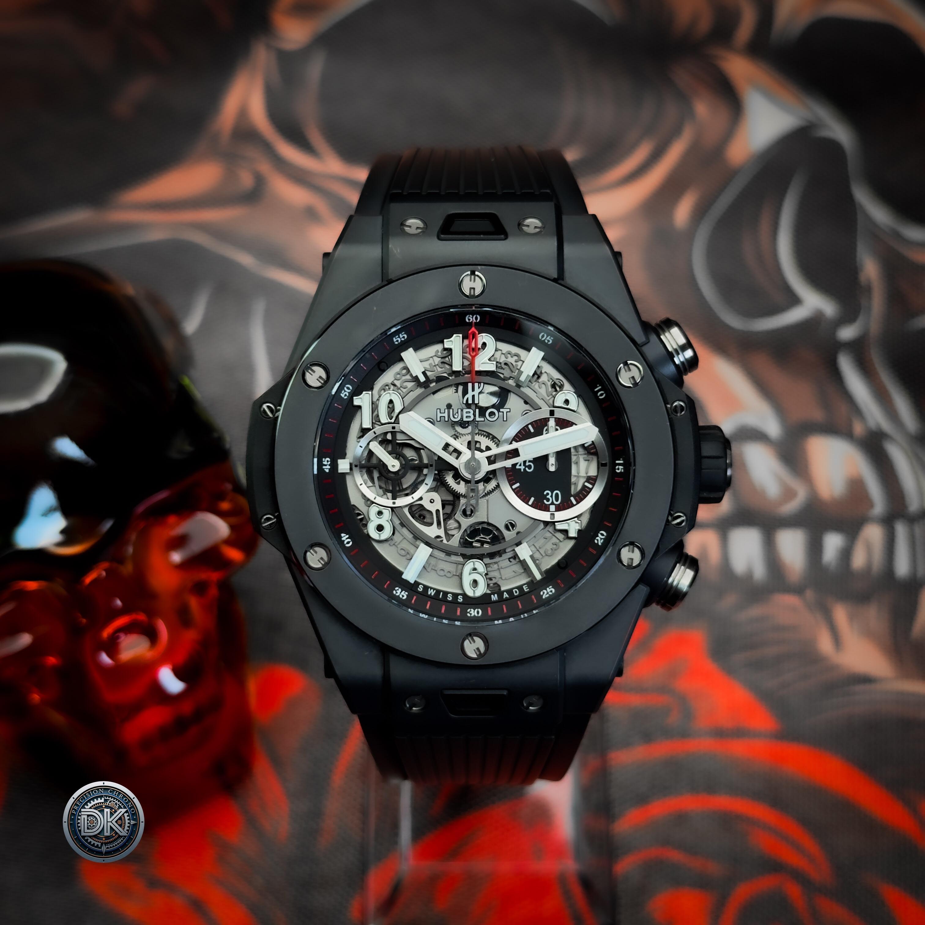 Precision Chrono DK🪐AVAILABLE—Hublot Big Bang Unico Black Magic 45mm | Ref: 411.CI.1170.RX | Box & Papers | Excellent Condition 🔥$11,000 shipped🔥 Insured shipping CONUS Key Details: Microblasted and Polished Black Ceramic Case | Matte Black Skeleton Dial | Manufacture Calibre HUB1242 UNICO (Automatic Flyback) | ~72-Hour Power Reserve | Column Wheel Chronograph with Date at 3 o'clock | Double AR-Coated Sapphire Crystal | Exhibition Caseback | 100m / 10 ATM Water Resistance | Black Structured...
