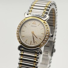 SEIKO CREDOR 5A70 0210 DIAMOND BEZEL 18KT QUARTZ WATCH NEW BATTERY RARE