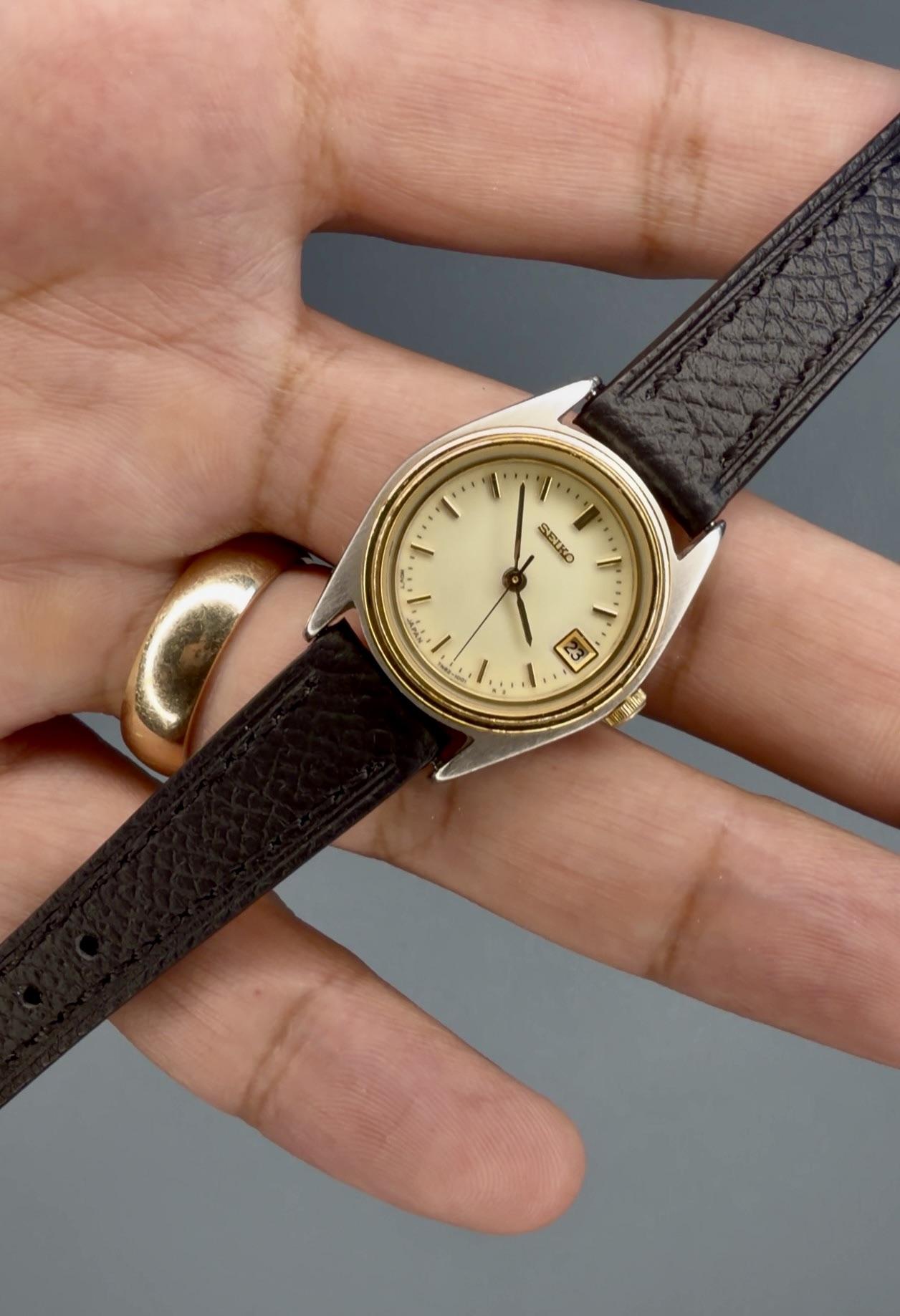 Ladies Seiko 7N82 S&G - $117 Shipped -Details: An absolutely beautiful ladies Seiko in S&G with a new black leather strap! Watch only and running perfectly. Perfect for any woman looking to elevate their style, or makes a great gift! -$117 Shipped -Includes shipping (US). I accept Venmo, Zelle, CashApp, and PayPal (+4% if using G&S) -Case size: 23mm -Movement: Quartz -Timestamp: https://imgur.com/a/R7hIkAD -Location: Downtown Los Angeles -IG: @ColeccionDeLosSantos -TikTok: Chris.DeLosSa...