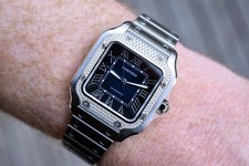 2024 Cartier Santos Medium Factory Diamond Bezel Blue Dial W4SA0006 4075 FS