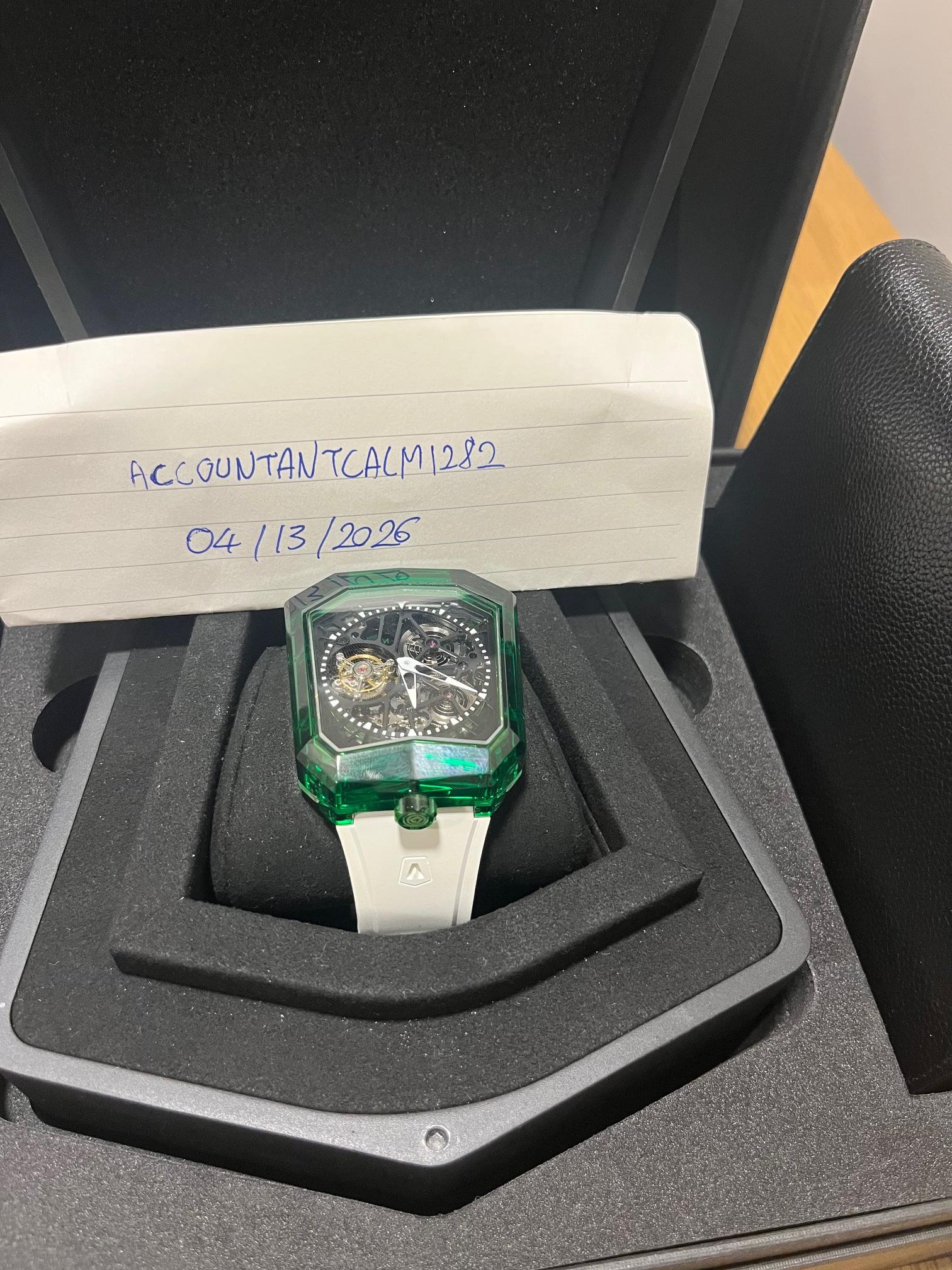 [WTS] Aventi Tourbillon – Green Crystal Case / Skeleton Dial / White Rubber Strap – Full Box & Papers