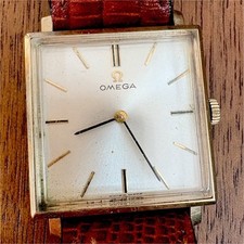 Omega Vintage 14K Gold Square Wristwatch Swiss Made Brown Leather Silver Dial