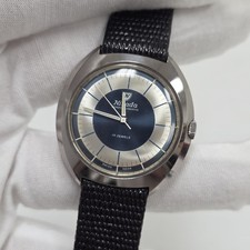 Rare Vintage Nivada Compensamatic 17 Jewel Swiss Mens Watch 4792 Blue Dial