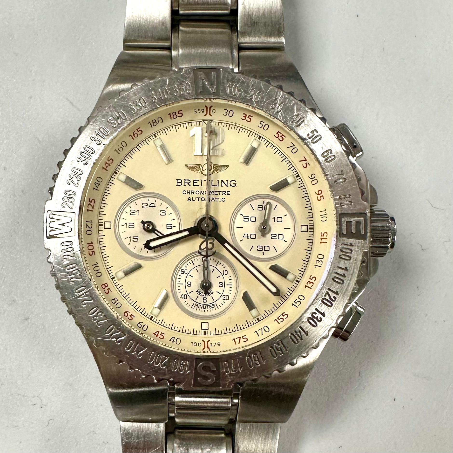 Hey folks Beautiful cream-colored dial on this Hercules from Breitling. Comes on original bracelet - sized for 6 to 6.25 inch wrist. Please see pics for condition - there are some normal daily wear marks on bezel and back. A daily driver that was worn and loved! Overall in fair condition but looking at it you can see it still looks great! $1700 OBO shipped conus PayPal F&F or Zelle. I have 71 positive transactions on watchexchange with good feedback so please read them. Also have an eBay stor...