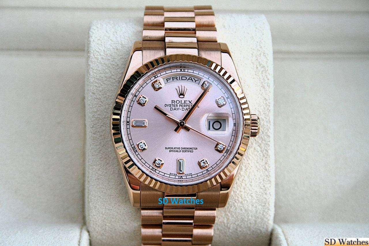 FS: ROLEX 118235 DAY DATE PRESIDENT 18K ROSE GOLD DIAMOND DIAL Apr 19, 2026 - 03:49 PM Hello Guys. I am selling a Rolex Day Date watch model 118235 that comes in near mint 96% condition. This watch comes in 36MM case, Solid 18K Rose gold with President band and Fluted bezel and a stunning Pink Diamond dial. This watch is an M serial and it comes with box and paper as seen in pictures. $35895 Delivered or face to face in San Diego. Always looking to buy Complete Rolex...