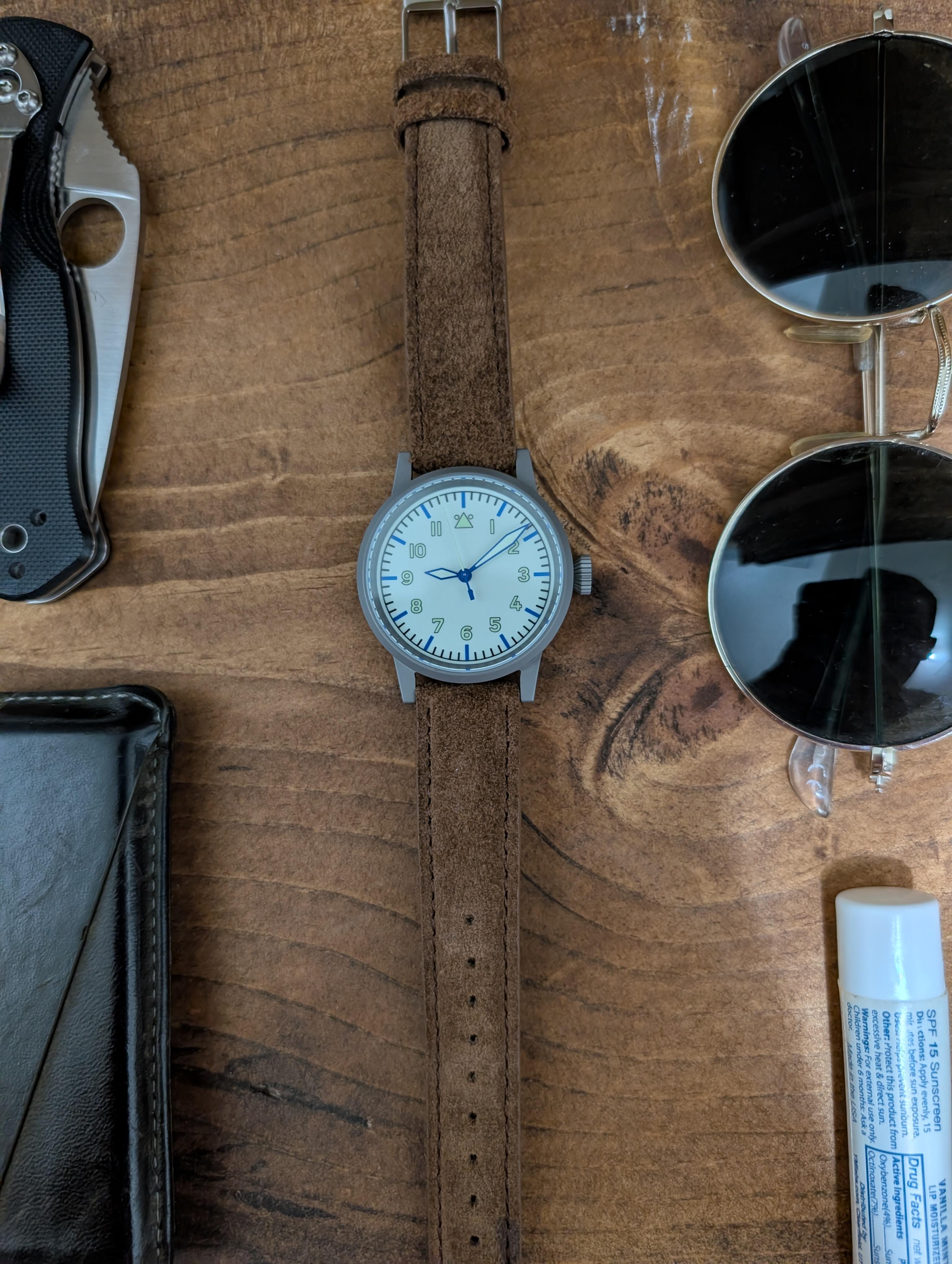 Super cool watch from Militado. It has a fully lumed dial for that wow factor. Been worn once by me. Comes with original black nato and brown suede Mr. Jones strap. Asking $40 shipped CONUS