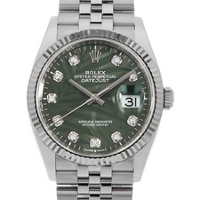ROLEX Datejust 36 10P diamond 126234G Olive green Palm motif 5 row jubilee b...