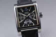 Oris Automatic Watch Black Leather Strap Date Complication Used Authentic