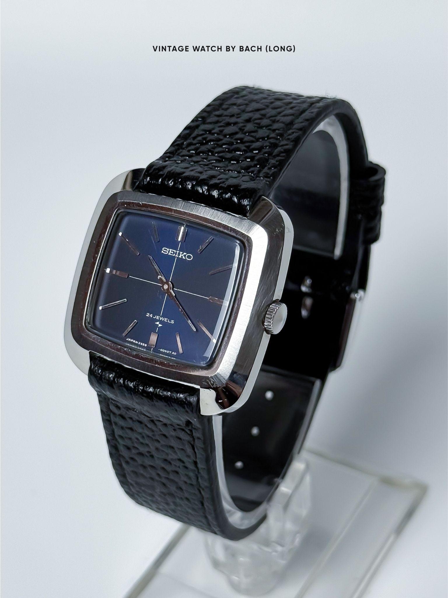 Seiko Chariot 2559-7000 Dark Blue Tank/Rectangular Watch - Price includes shipping + import duties + taxes (DDP) SPECIFICATIONS: \- Japanese Seiko Chariot hand winding watch in good condition from July 1969. Classic and elegant style. \- New handmade leather strap. Fit up to 18.5cm wrist. \- Stainless steel case, size 31mm (without crown), Lug to Lug: 32mm, Lug Width: 18mm, Thickness: 7mm. Suitable with all wrist size. \- Minimal dark blue dial, 2 hands with classic shinny steel sti...