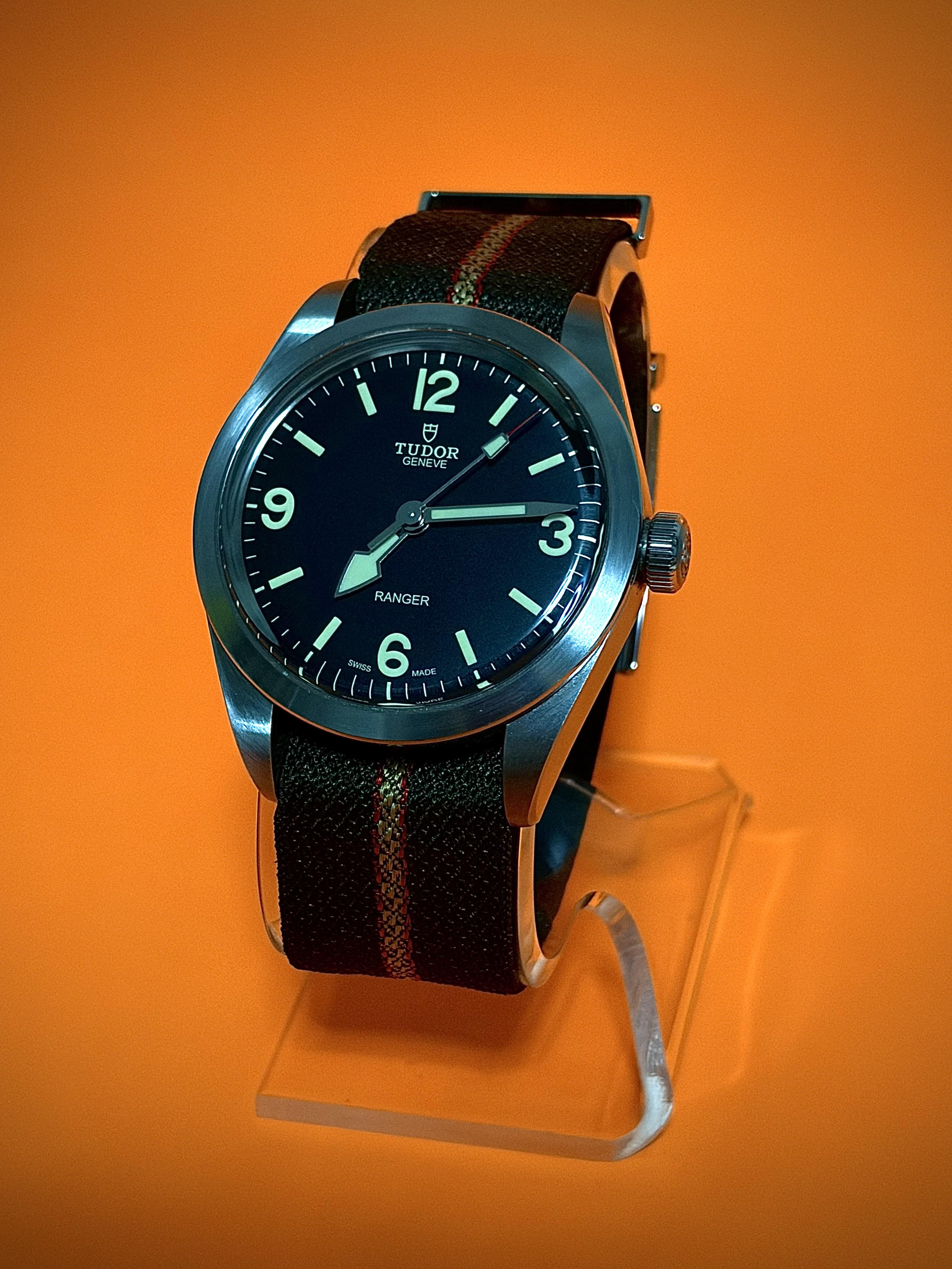 Tudor Ranger (Ref. 79950). Purchased in 2023, this is the perfect "Go Anywhere, Do Anything" (GADA) watch. It features the incredibly robust manufacture Calibre MT5402 and the classic 39mm field watch proportions that Tudor nailed with this release. Condition Case: Excellent condition. Very minor hairline marks from light wear, but no deep scratches or dings. Crystal: Flawless sapphire crystal. Strap: Original Tudor strap in great shape with plenty of life left. Movement: Running perfectly ...