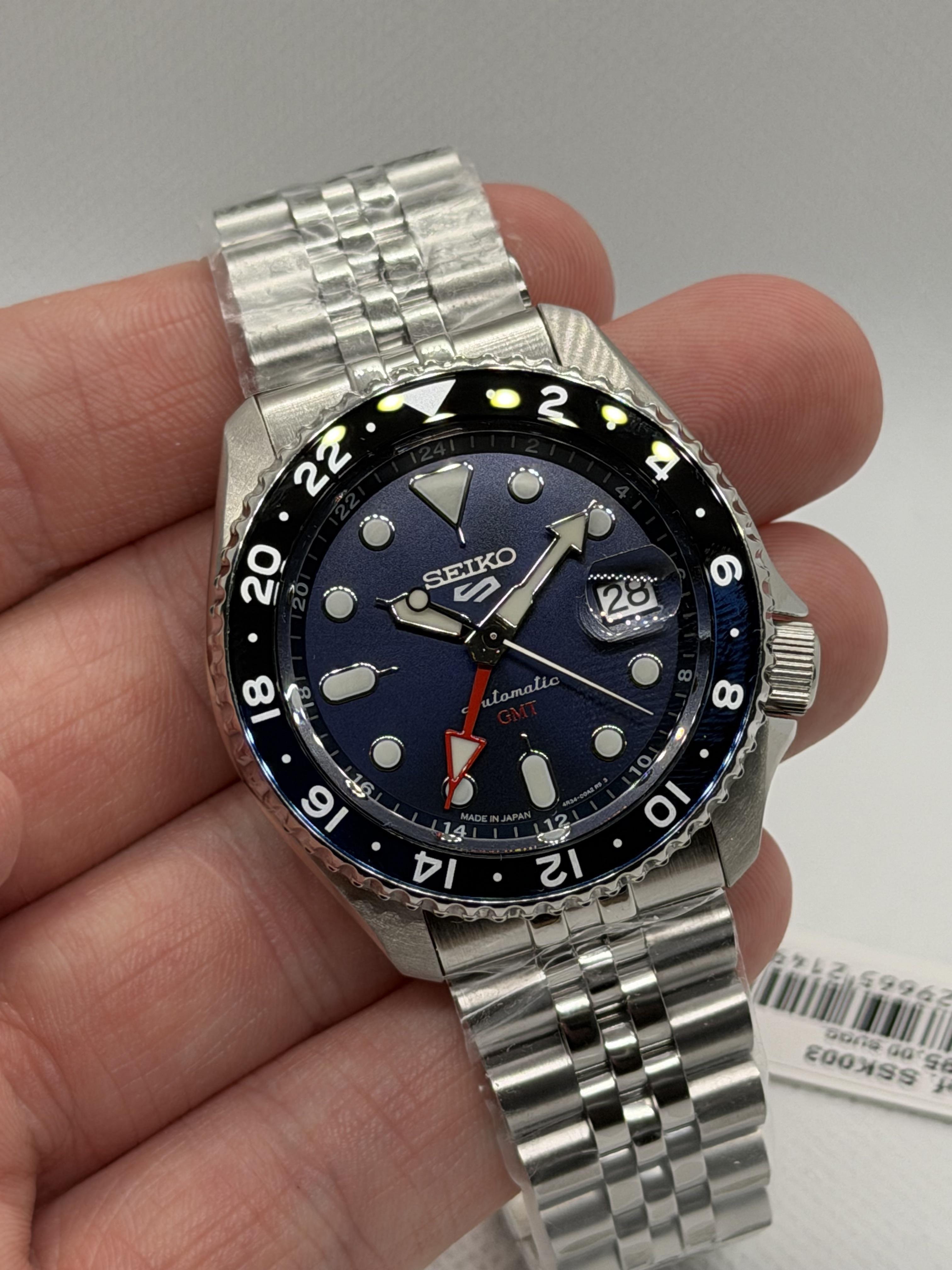 ❗️Comment before messaging 📸Timestamp: https://imgur.com/a/1YnQHw9 📝Up for sale is a brand new Seiko SSK003 GMT with full factory warranty (April 2026). 💵$345 shipped fully insured in the continental United States. Zelle or bank wire are preferred, but other forms are accepted for individuals with good feedback. ⏱️Specs * 42.5 mm case, 13.6mm thickness, 46mm lug to lug * 4R34 Movement with 41 hr power reserve * Bidirectional 24hr bezel * Push pull crown with 100m water resistance
